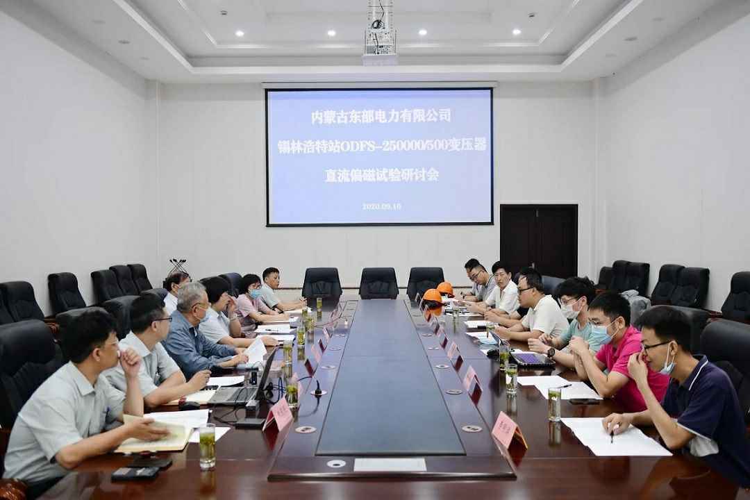 9月10日,国网蒙东锡林浩特ODFSZ-250000/500变压器直流偏磁试验方案研讨会在九游体育app官网登录入口-九游(中国)召开。来自上海交通大学、华北电力大学、中国电科院、国网电科院、湖北电科院、国网蒙东电力设备部、国网蒙东检修九游体育app官网登录入口-九游(中国)、四川启明星装备九游体育app官网登录入口-九游(中国)和我司的相关专家参加了本次研讨会。